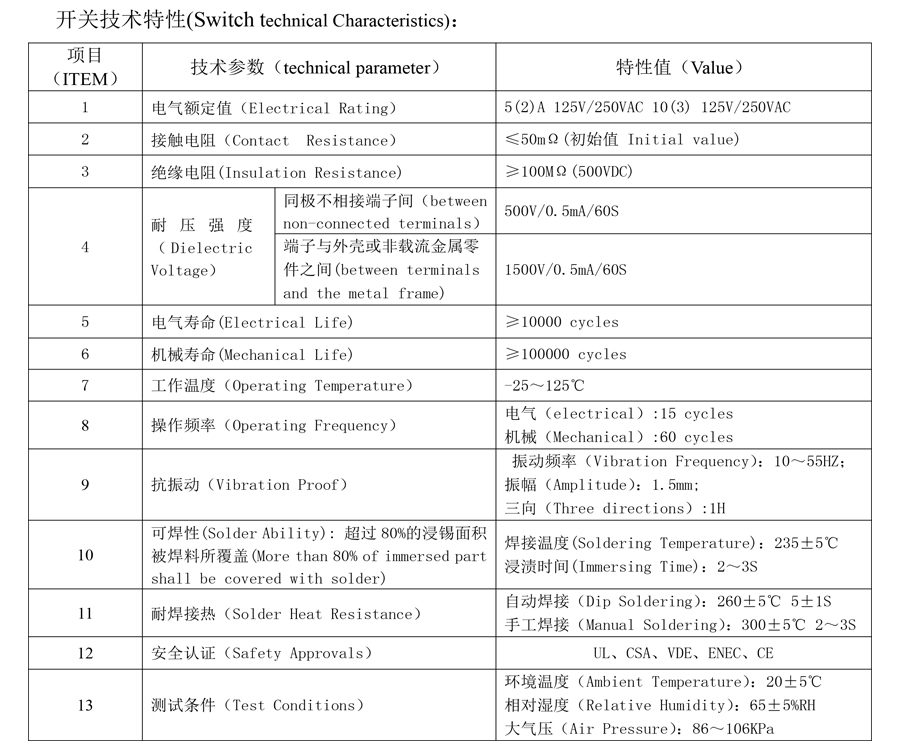 | 11 | Tahan Panas Solder | Penyolderan Celup :260±5℃ 5±1S Penyolderan Manual :300±5℃ 2~3S |
