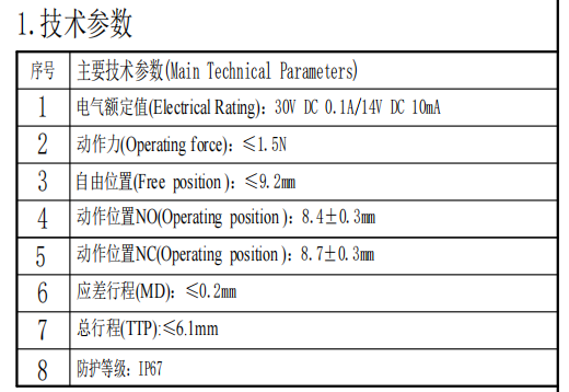 | 1 | Peringkat listrik | 10MA 14V DC/0.1A 30VDC | |