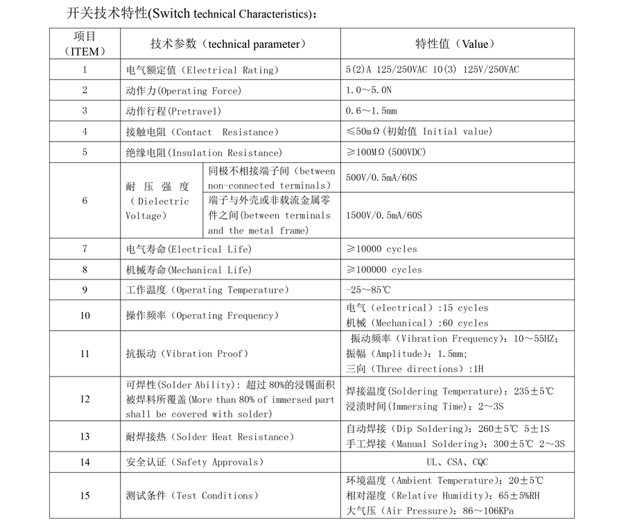 | 13 | Tahan Panas Solder | Penyolderan Celup :260±5℃ 5±1S Penyolderan Manual :300±5℃ 2~3S |