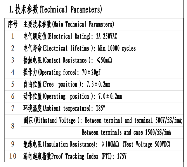 Parameter Sakelar Mikro (Spesifikasi)